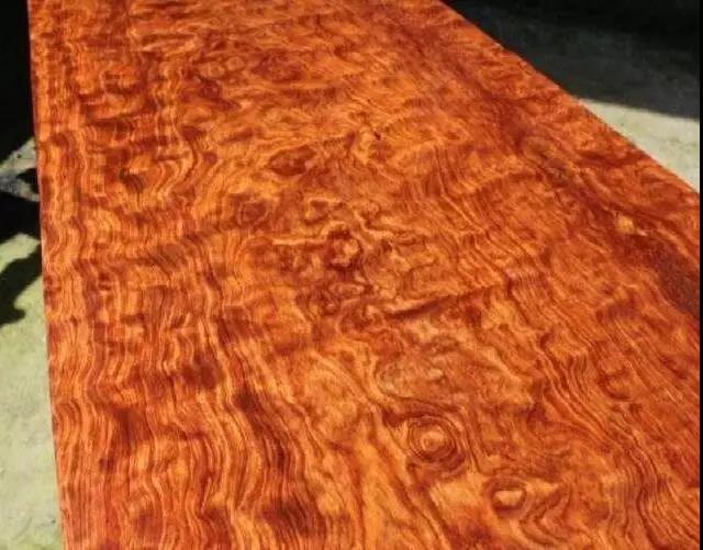 赞比亚黄花梨的表面带有虎皮纹,有的也会有鬼脸的图样。此种黄花梨的颜色很深,色彩方面较为艳丽,与海黄是很相似的。